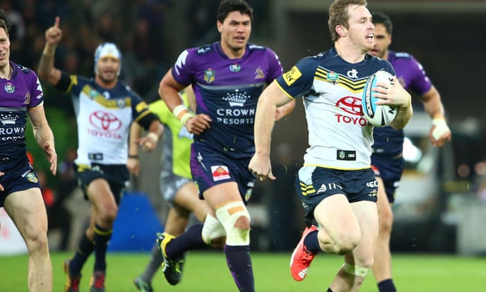 s Koroibete v koši, Morgan strelil minút neskôr, keď Gavin Cooper zdvihol Ben Hannant chargedown a klenutými mimo Steeden k užitočnosti Queensland, ktorý vykonal 50m score.NRL predbežná záverečná: Melbourne Storm v severnej Queensland Cowboys - ako sa to stalo viac